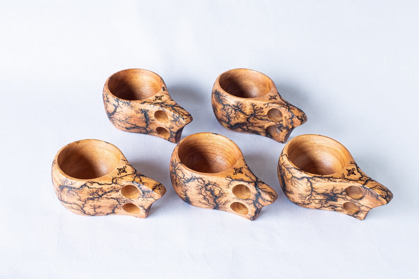 多くの条件で様々な模様を描くリヒテンベルク加工を施したククサカップは、同じものはない自分だけの特別なものとなります。さらに、柿渋で染められたその色味は使ううちに変化し、共に過ごした時間を味わいとして刻む友となることでしょう。